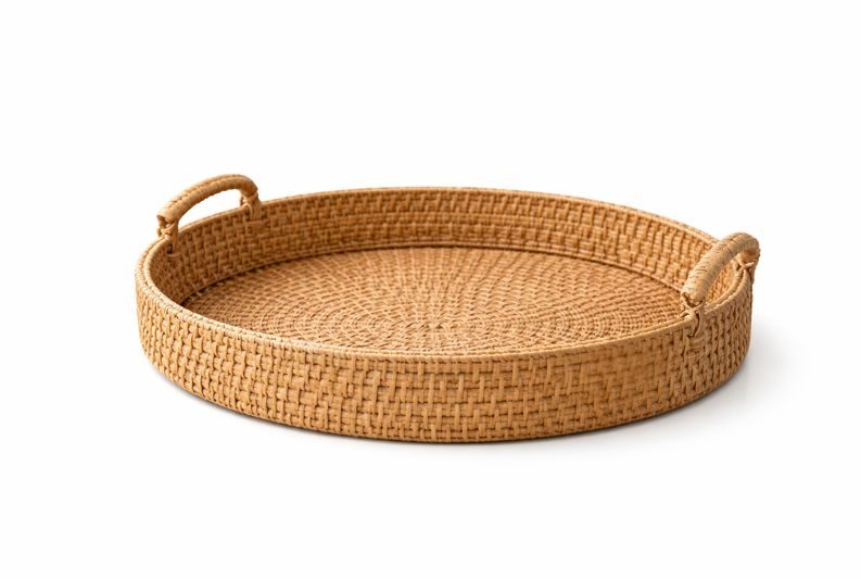 If your home leans soft and natural, a rattan tray adds texture without overwhelming the room. These trays feel casual yet intentional.